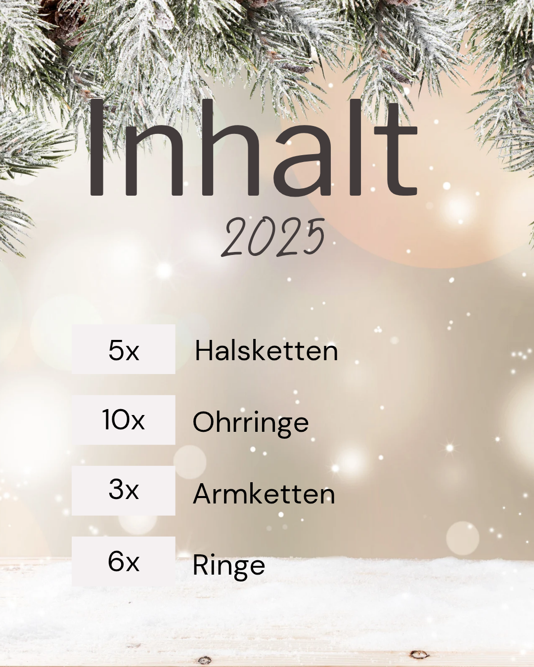 Jedes Stück ist aus vergoldetem Edelstahl gefertigt, kombiniert zeitlose Eleganz mit langlebiger Qualität. Von zarten Anhängern über filigrane Armbänder bis hin zu trendigen Ohrringen – hinter jedem Türchen verbirgt sich ein hochwertiges Schmuckstück, das deinen Alltag verschönert.